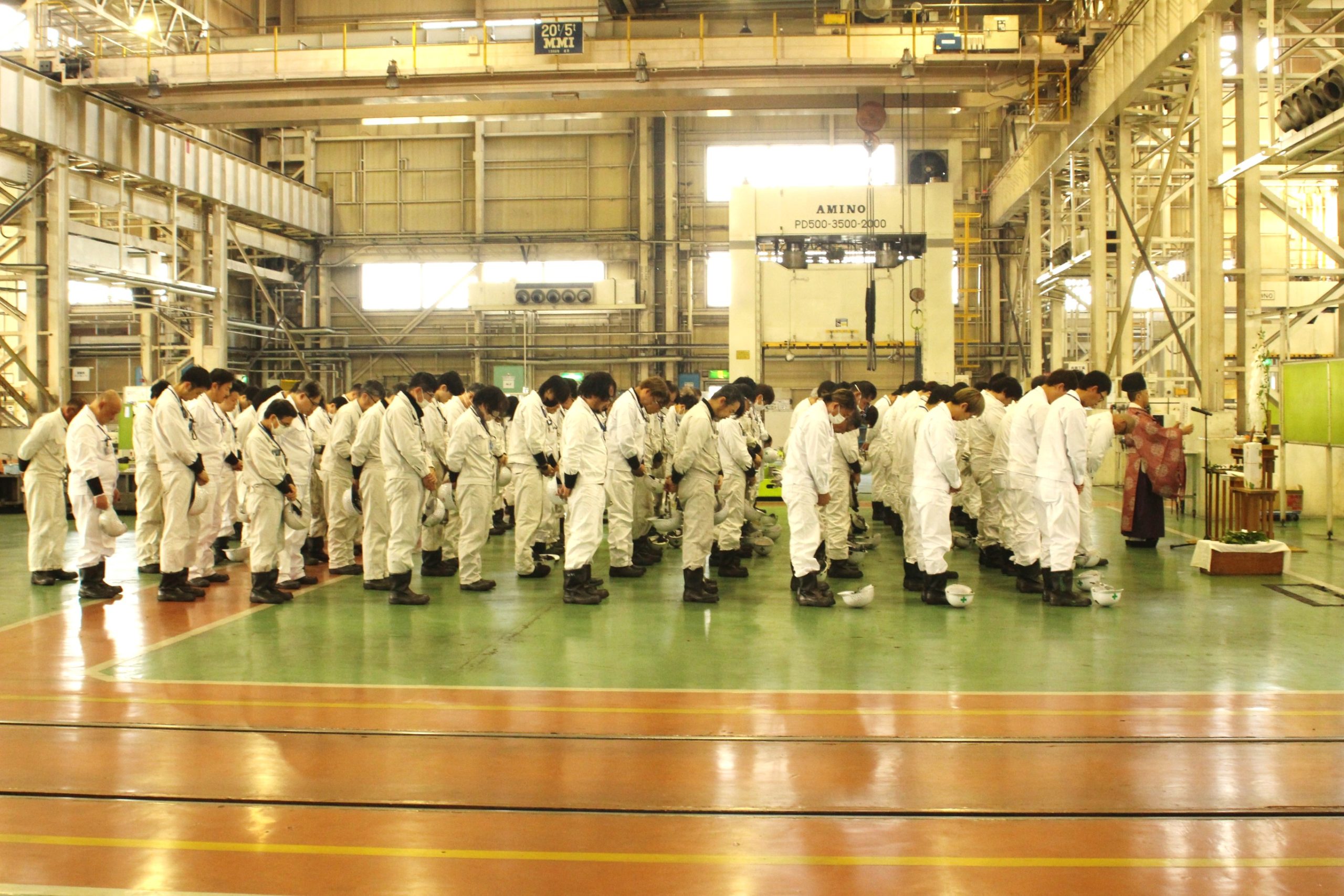 昨年中は格別のご厚情にあずかり、心より御礼申し上げます。 本年もなお一層のお引き立てを賜りますようお願い申し上げます。 2025年1月5日の仕事初めに従業員全員で1年の安全を祈願するため 津島神社神職様にお越しいただき、新年祈祷を実施しました。 第一工場にて、祭壇を祀り、〈会社安全/社運隆昌〉のご祈祷を受けました。 引き続き社用車の交通安全祈祷を行い、1年の安全を祈願しました。 2026年も安全第一で邁進して参ります。