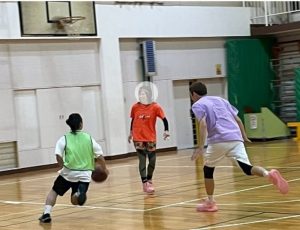 広いコートでの速攻やゾーンディフェンスには苦戦しましたが、バスケットボールの楽しさを改めて実感できる貴重な機会となりました。