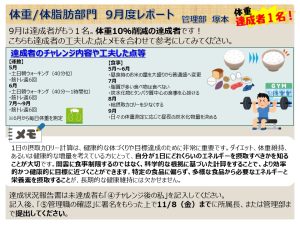 76期は『健康宣言チャレンジ2025 ~挑戦する姿は熱い~』と題しまして、全従業員がウォーキング部門・体重/体脂肪部門・禁煙部門・大会参加型部門の4部門のうち、いずれか1部門にエントリーし実施しています。